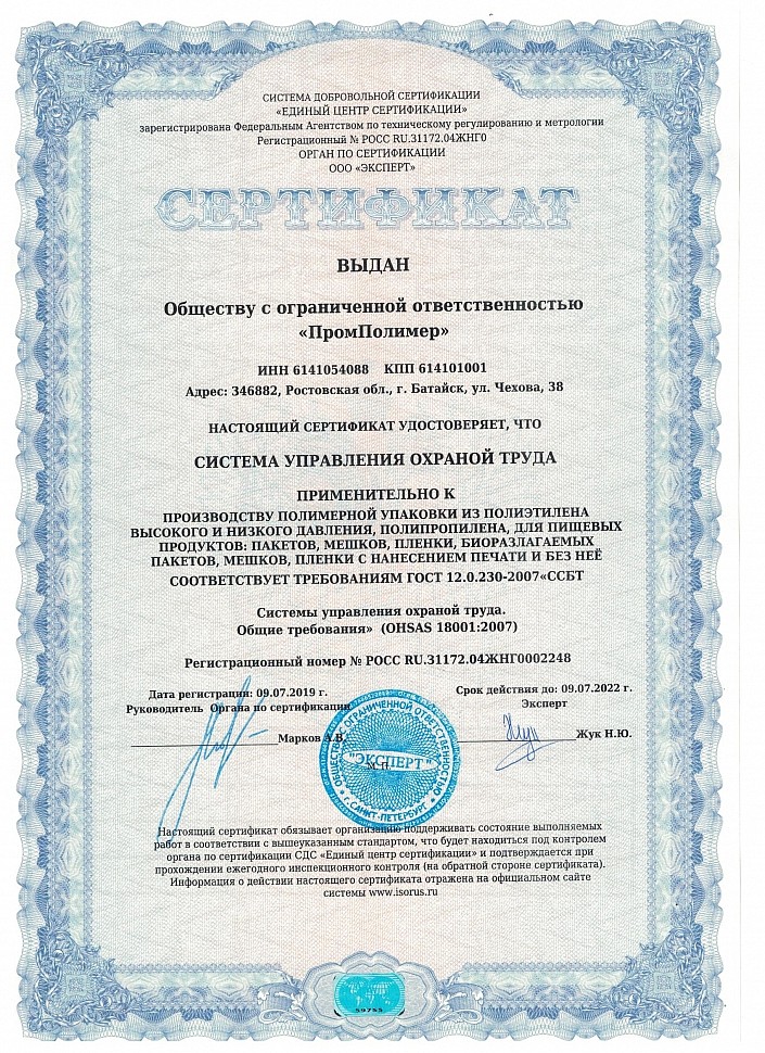 Декларация о соответствии: пакеты полиэтиленовые с протоколом испытаний
